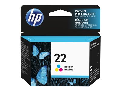 HP 22 - 5 ml - couleur (cyan, magenta, jaune) - original - blister - cartouche d'encre - pour Deskjet F2185, F2187, F2210, F2235, F2240, F2275, F2280, F2290, F375, F4175, F4190, F4194