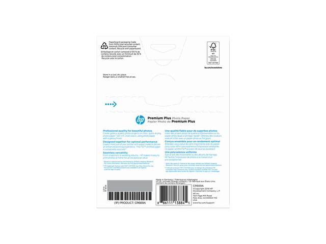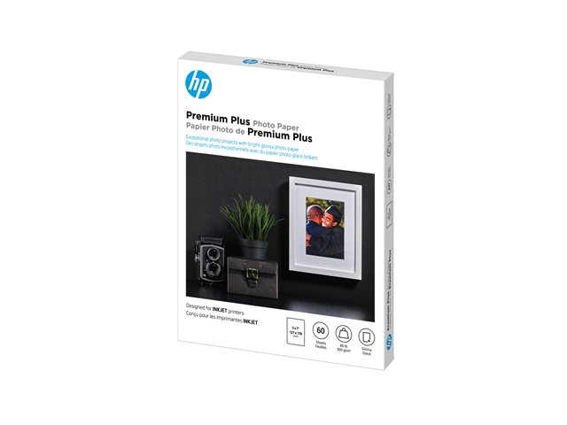 | Description du produit | HP Premium Plus - papier photo - brillant - 60 feuille(s) - 127 x 178 mm - 300 g/m² |