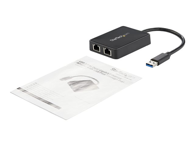 StarTech.com Adaptateur réseau USB 3.0 vers 2 ports Gigabit Ethernet - Convertisseur USB vers 2x RJ45 avec port USB intégré - Noir - Adaptateur réseau - USB 3.0 - 1GbE - 1000Base-T - 2 ports - noir