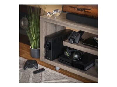 | Connecteurs de sortie | 6 x alimentation NEMA 5-15 (anti-surtensions) ¦ 6 x alimentation NEMA 5-15 (anti-coupures et anti-surtensions) ¦ 1 x USB de type A 4 broches ¦ 1 x 24 pin USB-C |