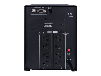 A mini-tower UPS with line interactive topology, the CyberPower Smart App Sinewave PR1000LCD provides battery backup, power protection (using sine wave output), and surge protection for corporate servers, department servers, storage appliances, network devices, and telecom installations requiring Active PFC power source compatibility. The PR1000LCD uses Automatic Voltage Regulation (AVR) to correct minor power fluctuations without switching to battery power, which extends battery life. AVR is essential in areas where power fluctuations occur frequently.