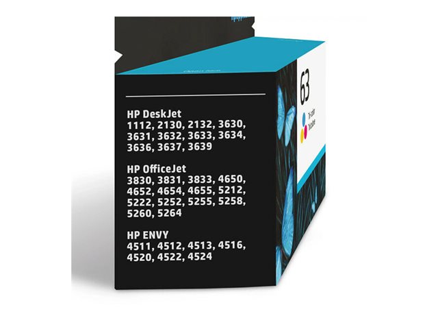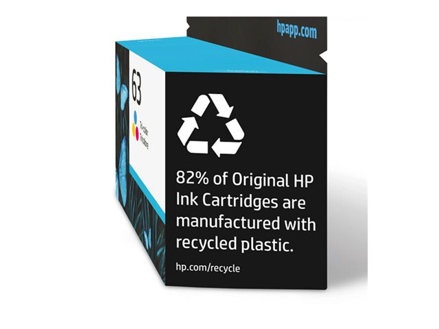 HP 63 - 4 ml - couleur (cyan, magenta, jaune) - original - cartouche d'encre - pour Deskjet 1110, 2130, 3630; ENVY 4520; Officejet 3830, 4650