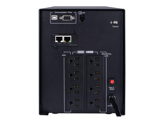 A mini-tower UPS with line interactive topology and a pre-installed SNMP card, the CyberPower Smart App Sinewave PR1500LCDN provides battery backup, power protection (using sine wave output), and surge protection for corporate servers, department servers, storage appliances, network devices, and telecom installations requiring Active PFC power source compatibility. The PR1500LCDN uses Automatic Voltage Regulation (AVR) to correct minor power fluctuations without switching to battery power, which extends battery life. AVR is essential in areas where power fluctuations occur frequently. The RMCARD205, a remote management card that provides remote management and configuration of the UPS via a standard Web browser or network management system (NMS) comes installed.