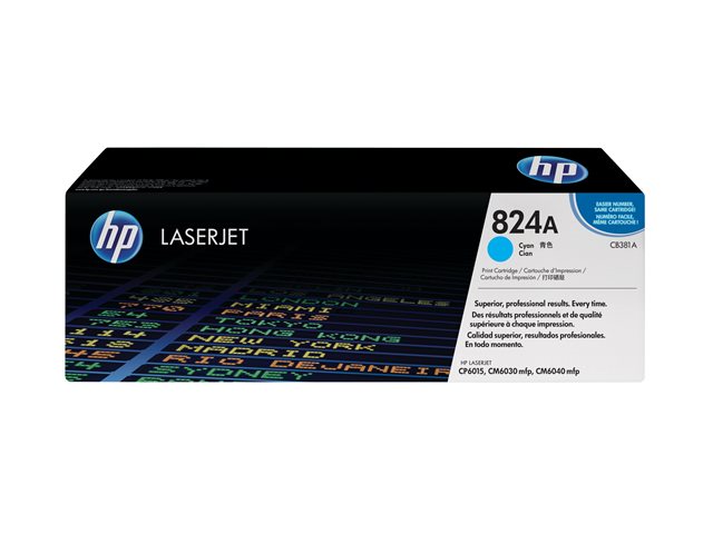 HP 824A - Cyan - original - LaserJet - cartouche de toner (CB381A) - pour Color LaserJet CM6040, CM6040f, CM6049f, CP6015de, CP6015dn, CP6015n, CP6015x, CP6015xh