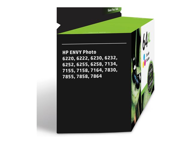 HP 64XL - 10 ml - à rendement élevé - couleur (cyan, magenta, jaune) - original - cartouche d'encre - pour ENVY Photo 62XX, Photo 71XX, Photo 78XX; Tango; Tango X