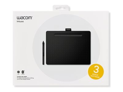 Stylet creatif Wacom Intuos Moyen - Numeriseur - 21.6 x 13.5 cm - electromagnetique - 4 boutons - sans fil, filaire - USB, Bluetooth - noir