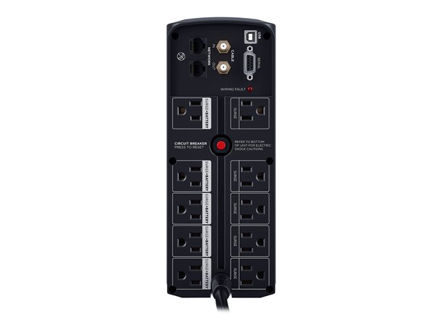 | Connecteurs de sortie | 5 x power NEMA 5-15R (anti-surtensions) ¦ 5 x power NEMA 5-15R (anti-coupures et anti-surtensions) |