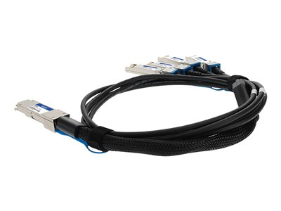 This is an Extreme Networks 10446 compatible TAA compliant 100GBase-CU QSFP28 to 2xQSFP28 direct attach cable that operates over passive copper with a maximum reach of 5.0m (16.4ft). It has been programmed, uniquely serialized to ensure it is 100% compliant and functional.