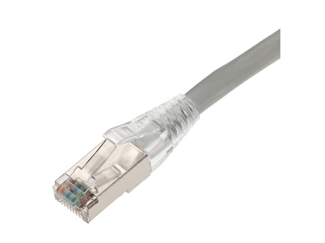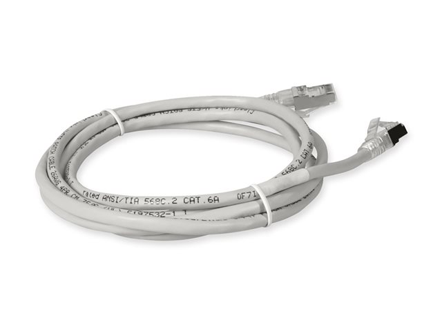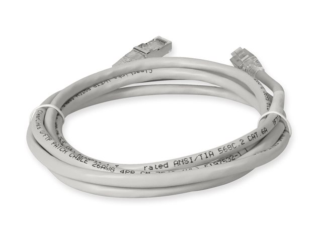 This is a 1ft RJ-45 (male) to RJ-45 (male) gray straight shielded twisted pair PVC copper patch cable. The Cat6A cable is a standardized twisted pair cable for Ethernet or other physical network layers. Cat6A standards specify performance of up to 500MHz. This PVC jacketed cable is best suited for LANs or SANs, and is recommended for connection between fiber patch panels, hubs, switches, media converters and routers. Shielded twisted pair patch cables are perfect for data centers, LANs and other short range network connections.