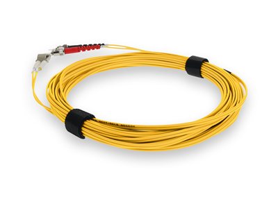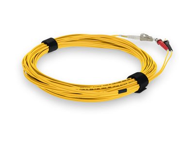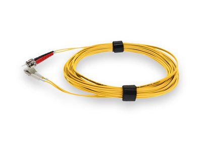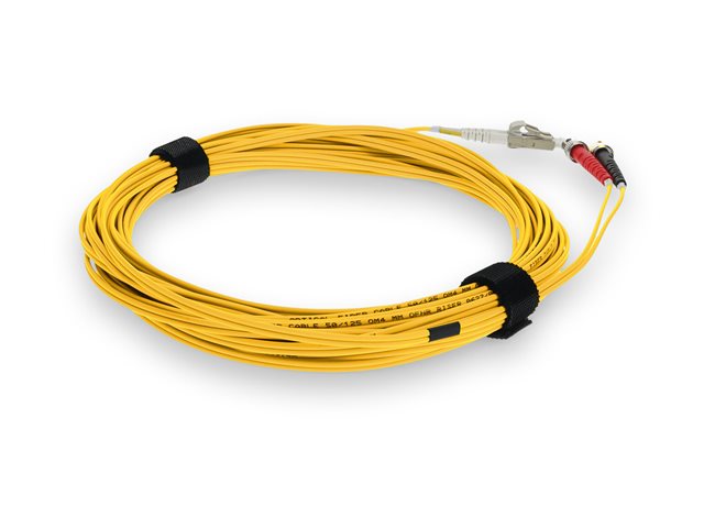 This is a 3m ST (male) to LC (male) yellow duplex riser-rated fiber patch cable. An OM4 cable has a core size of 50m microns that supports 10 Gigabit Ethernet at lengths measuring up to 550 meters, and 100 Gigabit Ethernet measuring up to 150 meters and is reverse compatible with OM3. This optical fiber, nonconductive, riser (OFNR) cable is best suited for use in interior fiber-optic applications. A duplex cable is a two-strand fiber optic patch cable that works best with transceivers that both transmit and receive.
