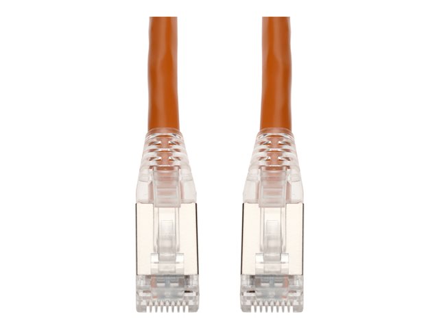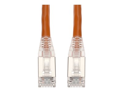 This is an 18ft RJ-45 (male) to RJ-45 (male) orange straight shielded twisted pair PVC copper patch cable. The Cat6 cable is a standardized twisted pair cable for Ethernet or other physical network layers. Cat6 standards specify performance of up to 250MHz. This PVC jacketed cable is best suited for LANs or SANs, and is recommended for connection between fiber patch panels, hubs, switches, media converters and routers. Shielded twisted pair patch cables are perfect for data centers, LANs and other short range network connections.