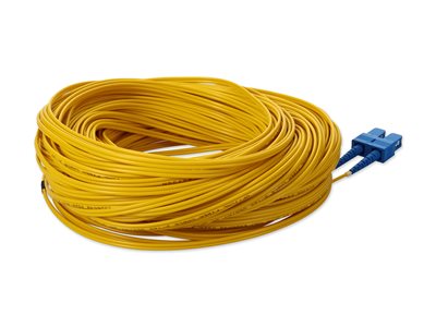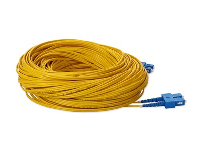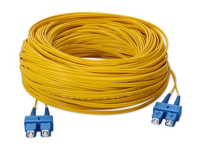 This is a 39.0m (127.9ft) SC (male) to SC (male) yellow OS2 duplex riser-rated patch straight cable that is used for high speed data transfer. OS2 is a standard single-mode optical fiber commonly used with wavelengths of 1310nm and 1550nm (9/125 microns), and has a maximum attenuation of 1dB/km. The OS2 standard is defined in ISO/IEC 11801. This riser (OFNR) cable is best suited for use in interior fiber-optic applications. Duplex cabling provides two-strands of fiber and is most commonly used in applications that utilize one lane to transmit and one lane to receive.