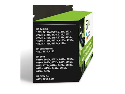 | Description du produit | HP 67XL - à rendement élevé - couleur (cyan, magenta, jaune) - original - cartouche d'encre |