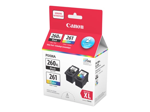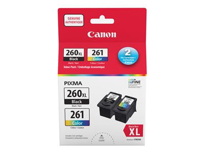 | Description du produit | Canon PG-260XL/CL-261 Value Pack - pack de 2 - XL - noir, couleur (cyan, magenta, jaune) - original - cartouche d'encre |