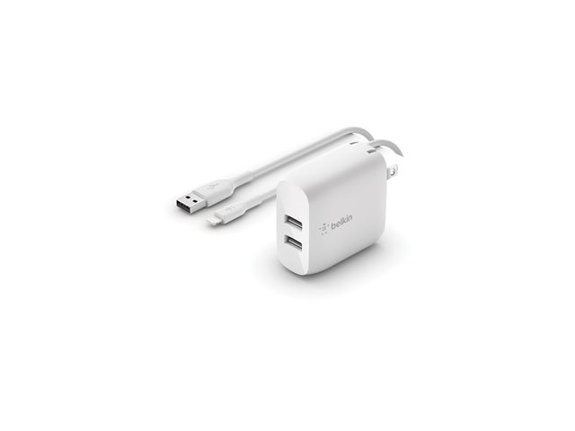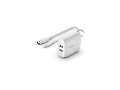 Belkin BOOST CHARGE - - 24 Watt - 4.8 A - 2 connecteurs de sortie (USB) - blanc - INCLUS CABLE LIGHTNING VERS USB-A 1 METRE (3.3FT)