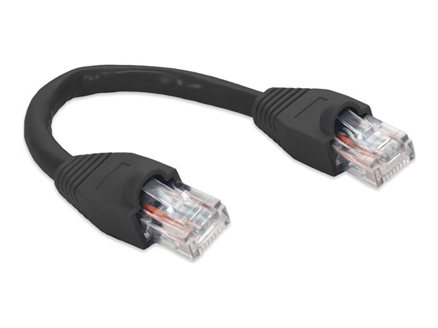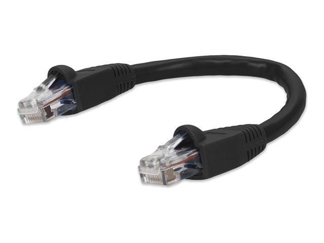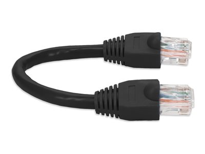 This is a 0.15m (0.5ft) RJ-45 (male) to RJ-45 (male) black Cat6A UTP PVC-rated patch straight cable that is used for high speed data transfer.