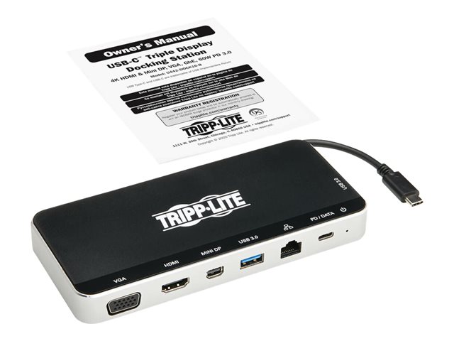 Eaton Tripp Lite Series USB C Docking Station Hub USB Dock Triple Display 4K HDMI VGA USB A/C Gbe - Station d'accueil - USB-C - VGA, HDMI, Mini DP - 1GbE