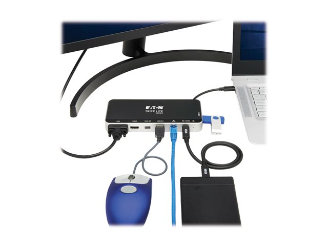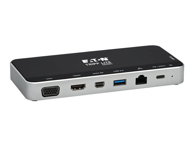 | Description du produit | Eaton Tripp Lite Series USB C Docking Station Hub USB Dock Triple Display 4K HDMI VGA USB A/C Gbe - station d'accueil - USB-C - VGA, HDMI, Mini DP - 1GbE |