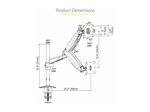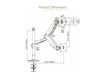 | Description du produit | StarTech.com Support Simple Écran PC - Bras Moniteur VESA - Support Écran Bureau 32" ou 49" (32:9)/ 8kg - Porte Écran Hauteur Réglable/Articulé - Fixation Pince/¿illet (ARMPIVOTE2) kit de montage - bras réglable en mouvement complet - pour moniteur |