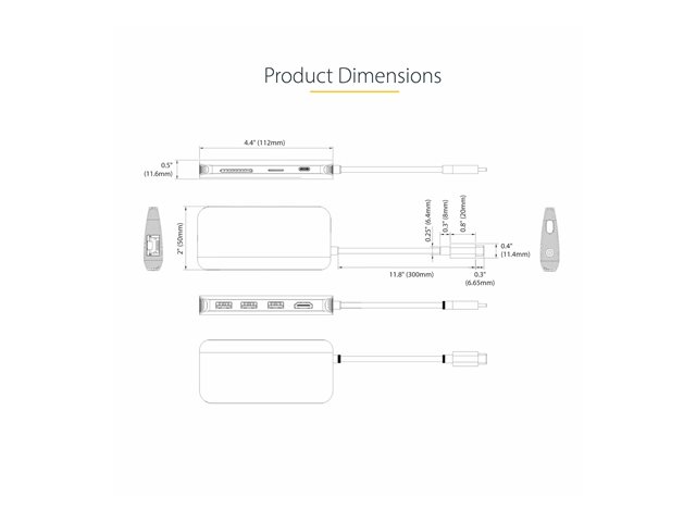 | Description du produit | StarTech.com Adaptateur Multiport USB C - Vidéo HDMI 4K 60Hz - Hub USB-A 5 Gbps à 3 Ports, 100W PD Pass-Through, GbE, SD/Micro SD, Station d'Accueil/Mini Dock, Câble 30cm (115B-USBC-MULTIPORT) - station d'accueil - USB-C / Thunderbolt 3 / Thunderbolt 4 - HDMI - 1GbE |
