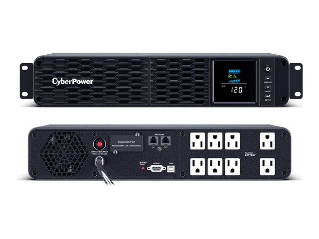 CyberPower PFC Sinewave Series CP1500PFCRM2U - Onduleur (rack-montable) - CA 120 V - 1000 Watt - 1500 VA - 9 Ah - USB, serial - connecteurs de sortie : 8 - 2U - noir