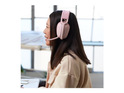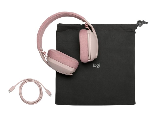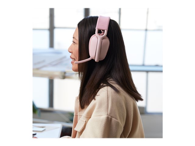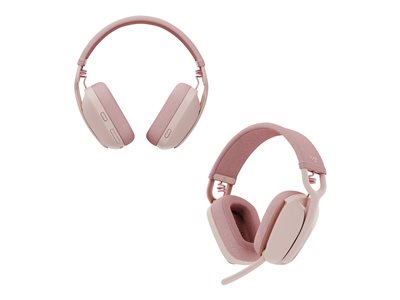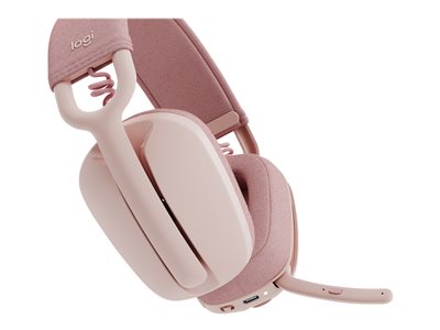 Logitech Zone Vibe 100 Lightweight Wireless Over Ear Headphones with Noise Canceling Microphone, Advanced Multipoint Bluetooth Headset, Works with Teams, Google Meet, Zoom, Mac/PC - Rose - Micro-casque - circum-aural - Bluetooth - sans fil - rose