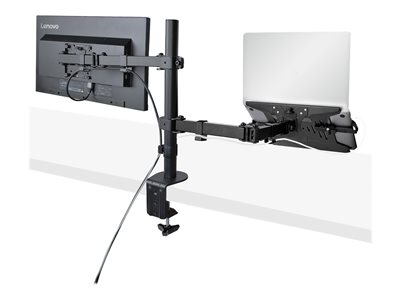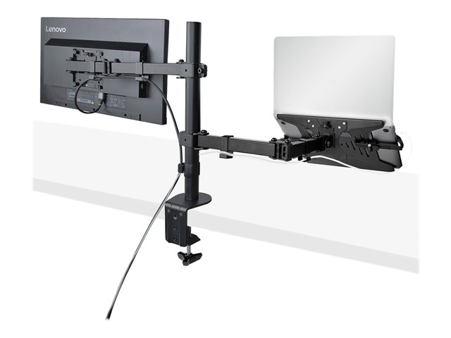 Augmentez l'espace de votre bureau et ajoutez de la polyvalence et de l'ergonomie à votre installation professionnelle ou domestique avec ce support de bureau compatible VESA pour ordinateur portable et moniteur. Le plateau pour ordinateur portable est suffisamment grand pour accueillir un ordinateur portable. Le bras pour moniteur vous permet de monter un écran compatible VESA.
