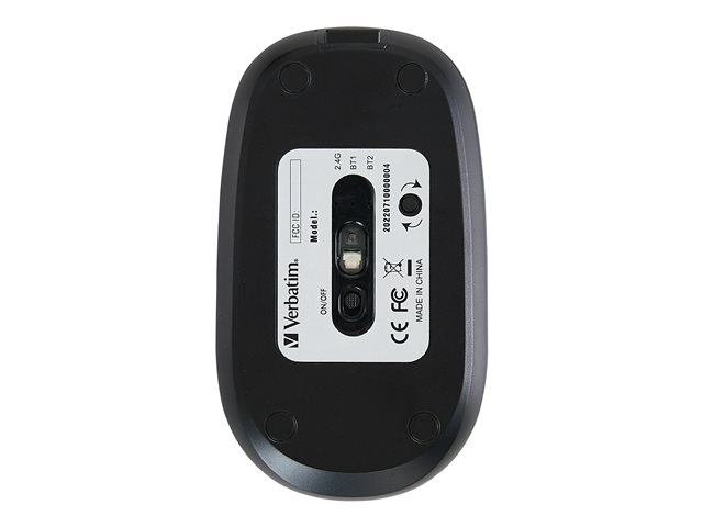 Verbatim - Souris - multi-appareils, rechargeable - optique - sans fil - 2.4 GHz, Bluetooth 5.0 - recepteur sans fil USB - noir