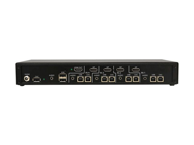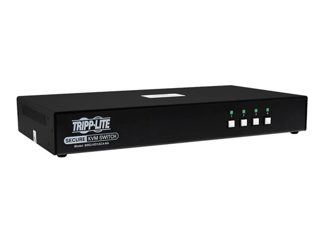 | Description du produit | Tripp Lite Secure KVM Switch, 4-Port, Single Head, DP to HDMI (x4), 4K, NIAP PP4.0, Audio, CAC, TAA - commutateur écran-clavier-souris/audio - 4 ports - Conformité TAA |