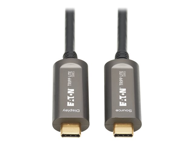 Eaton Tripp Lite Series USB-C to USB-C Plenum-Rated Fiber Active Optical Cable (AOC) - 4K 60 Hz, HDR, 4:4:4, M/M, Black, 30 m - Câble USB - 24 pin USB-C (M) pour 24 pin USB-C (M) - USB 3.0 - 30 m - plenum, Active Optical Cable (AOC), support vidéo 3D, prise en charge UHD 4K60Hz - noir, gris clair