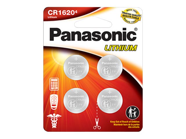 | Description du produit | Panasonic CR1620 batterie - 4 x CR1620 - Li |