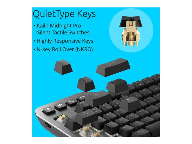 Kensington QuietType MK7500F Pro - Clavier - silencieux, mecanique, avec controle des reunions - retroeclaire - sans fil - 2.4 GHz, Bluetooth, USB - commutateur : Tactile - boite de vente au detail