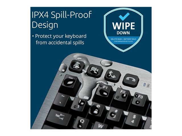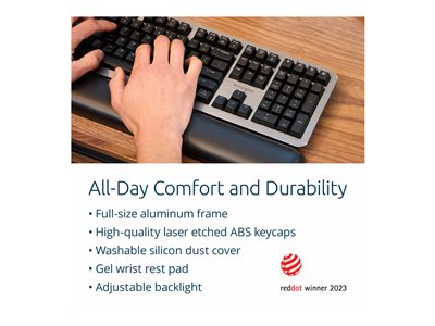 Conçu par des professionnels pour l'environnement de travail moderne, le clavier mécanique silencieux MK7500F QuietType Pro avec commandes de réunion rehausse votre expérience de frappe avec la précision, le confort, la durabilité et la compatibilité universelle qui sont requis pour maximiser la concentration et la productivité tout au long de la journée, et grâce à des touches tactiles qui établissent une nouvelle norme en matière de frappe silencieuse. Tapez en toute confiance, sachant que vous ne distrayez pas les autres. Améliorez votre productivité grâce aux commandes pratiques de vidéoconférence et aux touches personnalisables à l'aide d'un logiciel facultatif. Plus silencieux qu'une conversation normale ou une musique d'ambiance, les touches contact Kailh Midnight Pro Silent procurent une expérience de frappe à la fois réactive et silencieuse. Conception ergonomique durable assurant le confort de l'utilisateur tout au long de la journée. Rétroéclairage blanc réglable s'adaptant à n'importe quel environnement. Comprend un cadre en aluminium pleine grandeur, des capuchons de touche en plastique ABS de qualité gravés avec un laser, des coussinets d'atténuation sonore, des pattes à réglage double et un tapis repose-poignets en gel, le tout réuni dans un bâti scellé certifié IPX4 qui résiste aux éclaboussures et qui est muni d'un pare-poussière en silicone lavable. Le clavier MK7500F offre un chiffrement sécurisé AES de 128 bits de niveau gouvernemental. Un logiciel facultatif propose plus d'options de personnalisation pour accroître la productivité. Il offre une protection certifiée en matière de désinfection. Il est couvert par un soutien professionnel et une garantie limitée de 3 ans.