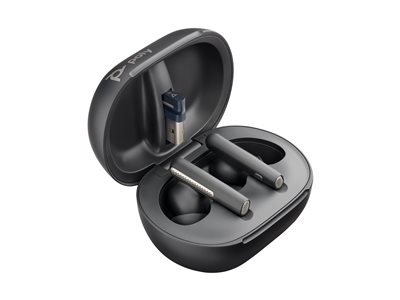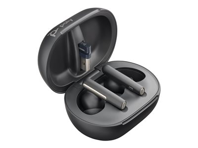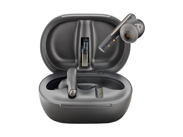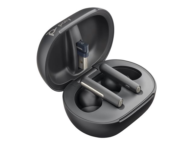 HP Poly Voyager Free 60+ UC - Ecouteurs sans fil avec micro - intra-auriculaire - Suppresseur de bruit actif - USB-A via adaptateur Bluetooth - noir de charbon - certifie Zoom