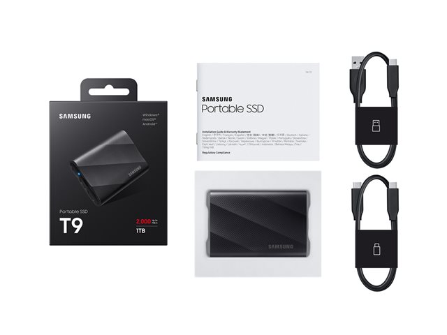 Samsung T9 MU-PG2T0B - SSD - chiffré - 2 To - externe (portable) - USB 3.2 Gen 2x2 (USB-C connecteur) - AES 256 bits - noir