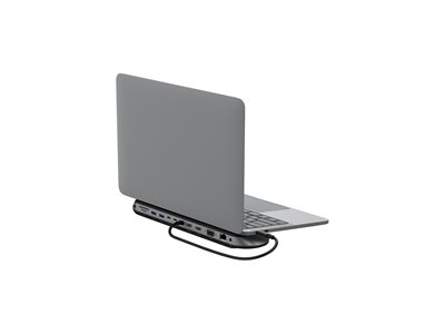 La station d'accueil universelle USB-C 11-en-1 Pro CONNECT de Belkin simplifie la connectivité grâce à ses multiples ports conçus pour le multitâche moderne. Prenant en charge jusqu'à 3 moniteurs, elle améliore la productivité en permettant l'utilisation simultanée de plusieurs écrans. La station d'accueil dispose d'une gamme d'interfaces, notamment HDMI, VGA et Ethernet 2,5 GbE, répondant à divers besoins de connexion. De plus, elle offre USB Power Delivery de 100 W pour une recharge rapide des appareils tout en maintenant des vitesses de transfert de données robustes pouvant atteindre 10 Gbps. La polyvalence est mise en avant grâce à des lecteurs de cartes SD et microSD intégrés, qui facilitent l'accès aux fichiers sur différents formats de supports. Conçue dans un souci de durabilité, cette station d'accueil est fabriquée à partir de 72 % de matériaux recyclés post-consommation. Sa conception inclut une fonction de support pour ordinateur portable et est conforme aux normes Plug-and-Play pour une installation sans effort. Profitez d'un espace de travail épuré sans sacrifier les performances grâce à la station d'accueil Belkin CONNECT Universal USB-C 11-en-1 Pro, parfaite pour les professionnels en déplacement ou pour tous ceux qui souhaitent améliorer leur installation de bureau à domicile.