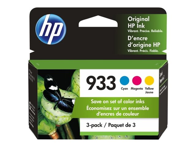 | Description du produit | HP 933 - pack de 3 - jaune, cyan, magenta - original - cartouche d'encre |