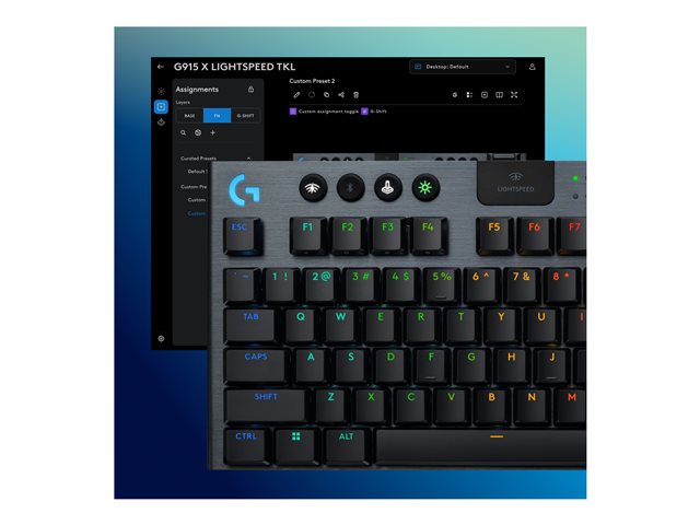 Logitech G915 X - Clavier - LIGHTSPEED - TKL - backlit - sans fil - 2.4 GHz, Bluetooth, USB - QWERTY - Anglais - commutateur : GL Linear - noir
