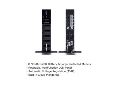CyberPower Smart App Sinewave PR2200RT2UCN - Onduleur (montable sur rack / externe) - CA 100-120 V - 2200 Watt - 2200 VA - 9 Ah - serial, USB, Ethernet - connecteurs de sortie : 8 - PFC active - 2U - noir - avec carte de gestion de réseau RMCARD205