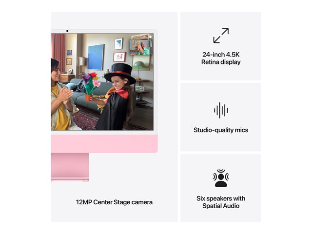 Apple iMac with 4.5K Retina display - Tout-en-un M4 - RAM 16 Go - SSD 256 Go - Apple M4 10-core - Gigabit Ethernet, IEEE 802.11ax (Wi-Fi 6E), Bluetooth 5.3 - macOS Sequoia 15.0 - moniteur : LED 24" 4480 x 2520 (4.5K) - clavier : Français canadien - rose