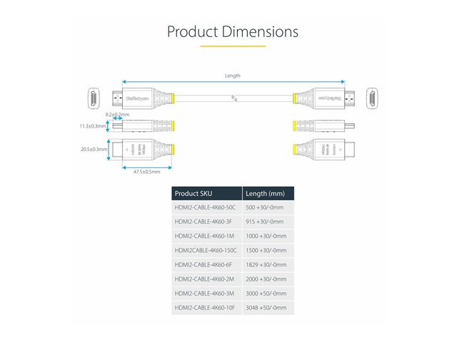 | Fonctions | Câble passif, support pour 4K60Hz |