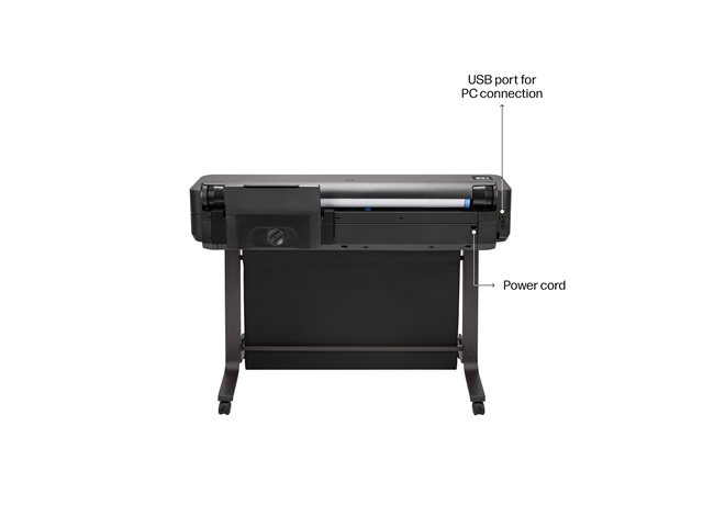 HP DesignJet T650 - 36" imprimante grand format - couleur - jet d'encre - A0, ANSI D, Rouleau (91,4 cm x 45,7 m) - 2 400 x 1 200 ppp - jusqu'à 0.42 min/page (mono) / jusqu'à 0.42 min/page (couleur) - capacité : 1 inclinaison - Gigabit LAN, USB 2.0, Wi-Fi(n) - outil de coupe