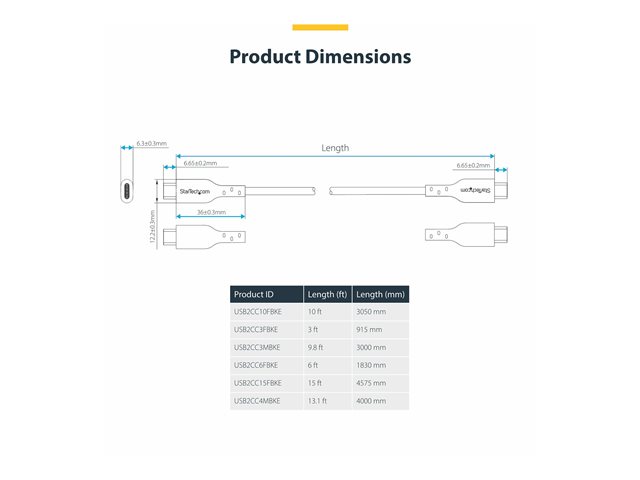 | Description du produit | StarTech.com 15ft (4.5m) USB-C Charging Cable, USB C Cable, 60W 3A PD - Câble USB de type-C - 24 pin USB-C pour 24 pin USB-C - 4.6 m |