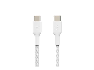 Belkin BOOST CHARGE - Câble USB - 24 pin USB-C (M) pour 24 pin USB-C (M) - USB 2.0 - 3 A - 2 m - USB Power Delivery (60W), câble tressé - blanc