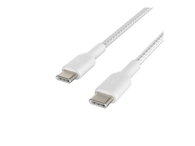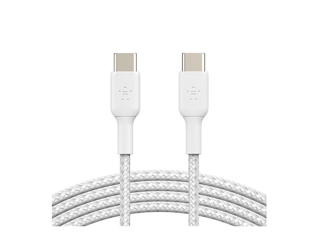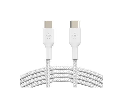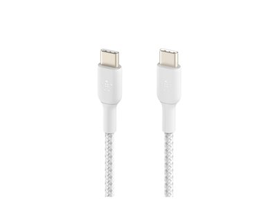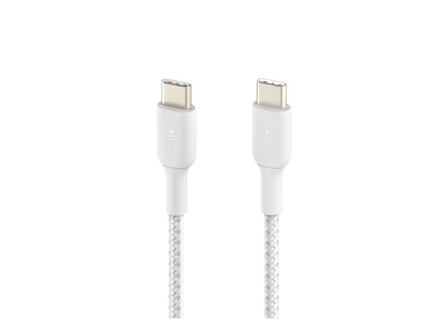 Belkin BOOST CHARGE - Câble USB - USB-C (M) pour USB-C (M) - USB 2.0 - 3 A - 2 m - USB Power Delivery (60W), câble tressé - blanc