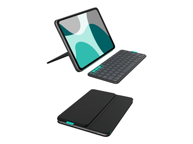 Logitech Flip Folio - Clavier et étui - full size - sans fil - Bluetooth 5.1 LE - QWERTY - Anglais - graphite - pour Apple 10.9-inch iPad Air (5th generation); 11-inch iPad Air (M2, M3); 11-inch iPad Pro (M4, M5)
