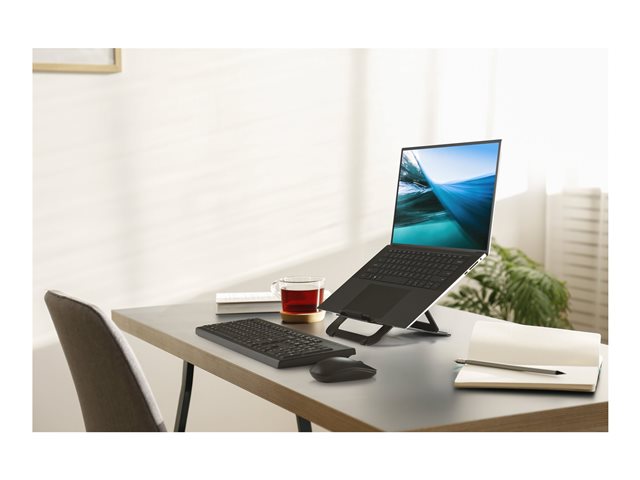 The Kensington notebook stand is designed to enhance your productivity and comfort while working. Made from durable aluminum, this laptop riser features adjustable height settings, allowing for a customized viewing angle that promotes an ergonomic posture. Ideal for professionals on the go, its portable design makes it easy to carry, ensuring you can stay productive wherever you are. Compliant with IGR, EN ISO 15537, and DIN 26800 standards, this stand delivers reliable performance and supports a healthier workspace.