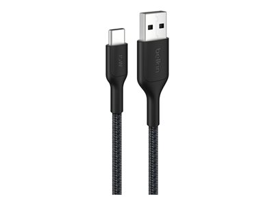 Belkin BoostCharge Pro - Câble USB - USB (M) pour 24 pin USB-C (M) - USB 2.0 - USB Fast Charge (15W), câble tressé - noir