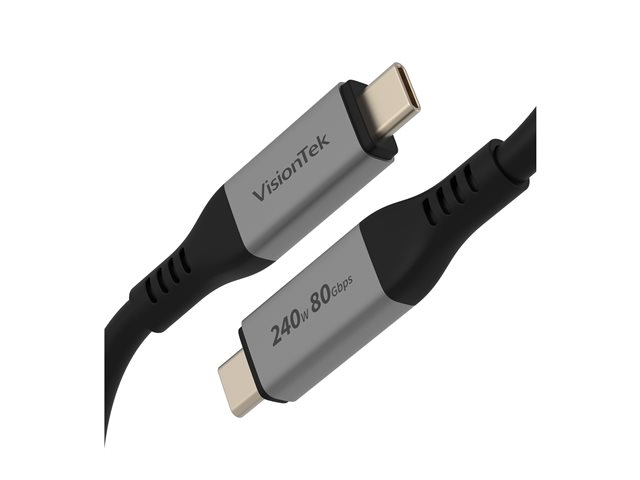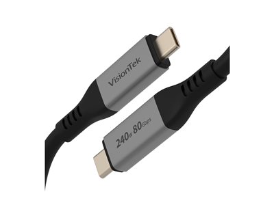 VisionTek - Câble USB - 24 pin USB-C (M) pour 24 pin USB-C (M) - USB4 / Thunderbolt 3 / Thunderbolt 4 / Thunderbolt 5 / DisplayPort 2.1 - 48 V - 5 A - 1.5 m - jusqu'à 240 W de puissance, support 4K240Hz (3840 x 2160) (DSC), support pour 16K60Hz, support 8K120 Hz (7680 x 4320) (DSC)