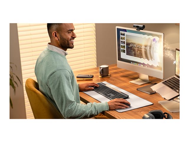 Signature Slim Solar+ for Mac is always ready. This sleek, durable wireless keyboard draws power from solar and artificial light sources via a light-absorbing strip and stores it for as long as four months in a durable battery with a lifespan of up to 10 years. Even after months of total darkness, it provides cable-free, hassle free typing with a familiar, laptop-style typing feel. Designed for your minimal, elegant Mac setup and built to last for up to 10 million keystrokes, featuring high quality construction materials including recycled plastic, it’s better for longer. Save time by automating repetitive tasks with one keystroke using the Action Key customizable via Logi Options+ App, and switch between up to three devices. Pair it with a Logitech multi-device mouse for effortless typing and clicking across computers.